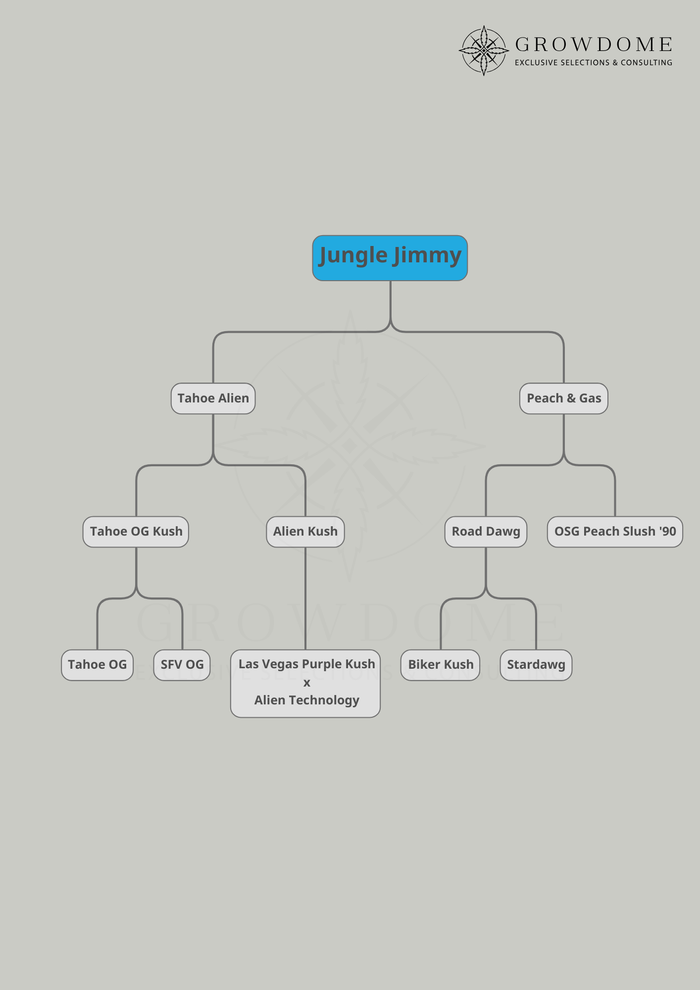 Jungle Jimmy ist eine kraftvolle Kreuzung aus Tahoe Alien und Peach and Gas. Mit einer starken Indica-Dominanz sorgt diese Genetik für entspannende und beruhigende Effekte. Jungle Jimmy hat eine Blütezeit von etwa 8 Wochen und zeigt eine mittlere Größe sowie ein mittleres Verzweigungsverhalten. Die einfache Handhabung macht sie besonders für Anfänger im Cannabis-Anbau attraktiv, die bei einfacheren Züchtungsanforderungen dennoch eine starke, entspannende Wirkung erzielen möchten.